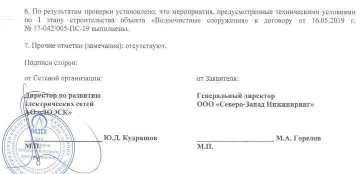 Акт о выполнении технических условий, который оказался у нас в руках, датирован 13 октября 2021 года. Сам по себе документ достаточно скучен для неосведомленного читателя: все подключено верно, вот такие агрегаты и оборудование в составе схемы и прочее. Отметим, что сетевая организация замечаний не высказывала.
