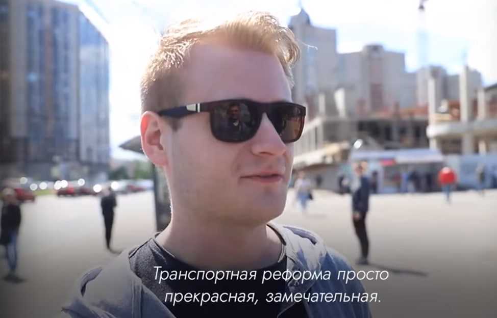 «Транспортная реформа просто прекрасная, замечательная. Наконец-то транспорт ходит быстро, вовремя. Никаких больше маршруток», – заявил молодой мужчина.